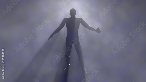 Man Floating In Fog Mist Silhouette Shadow Figure 3d Rendering