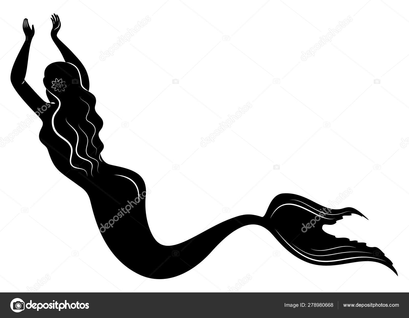 Silhouette Of A Mermaid Beautiful Girl Is Floating In The Water