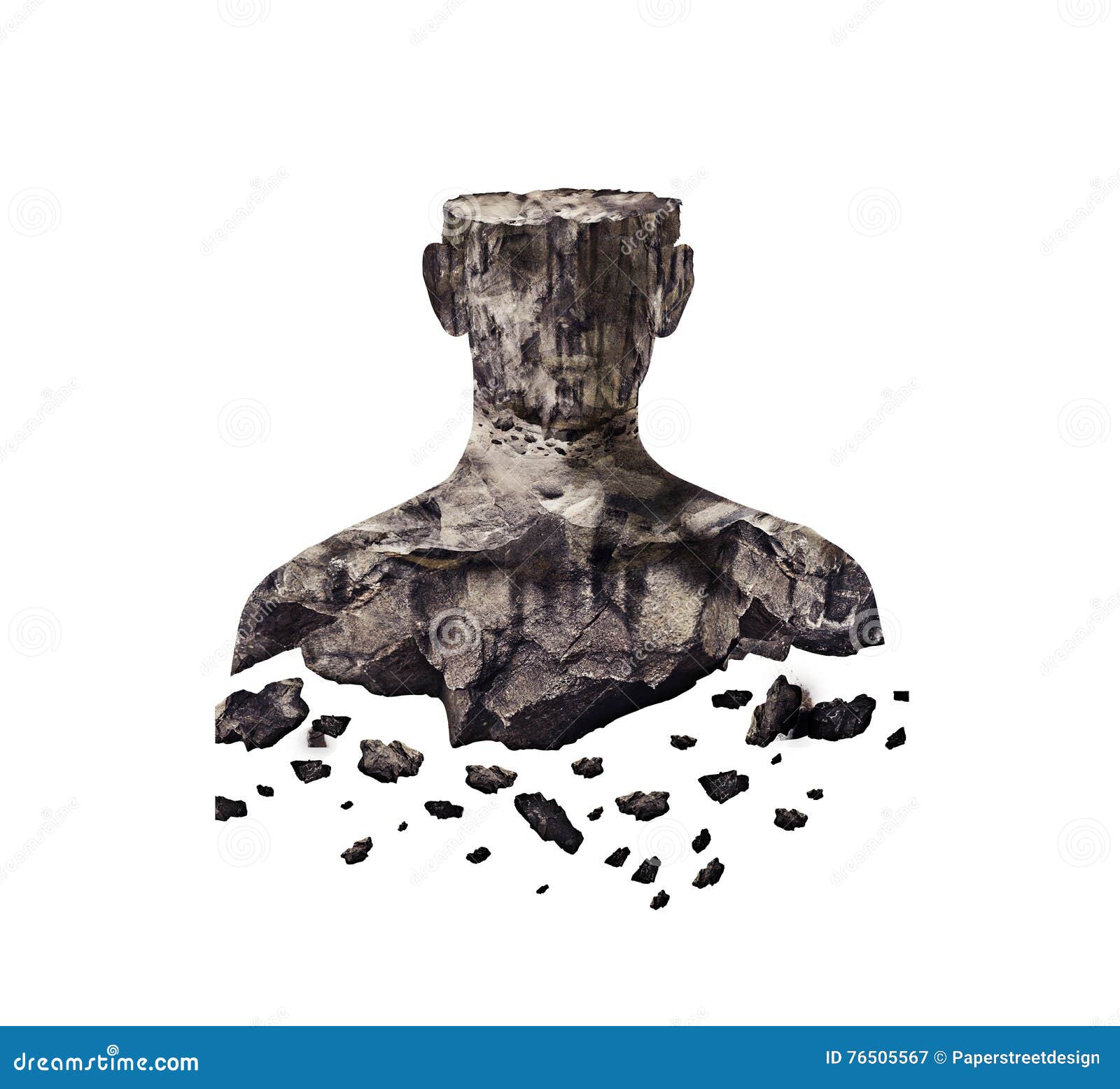 Floating Double Exposure Of Silhouette And Falling Rocks Stock
