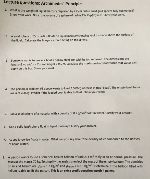 Solved What Is The Weight Of Liquid Mercury Displaced By